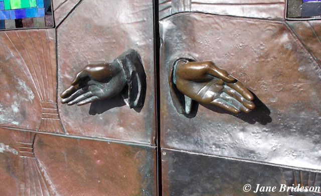 Hands on the door of Saint Brigid's Parish Church, Kildare.