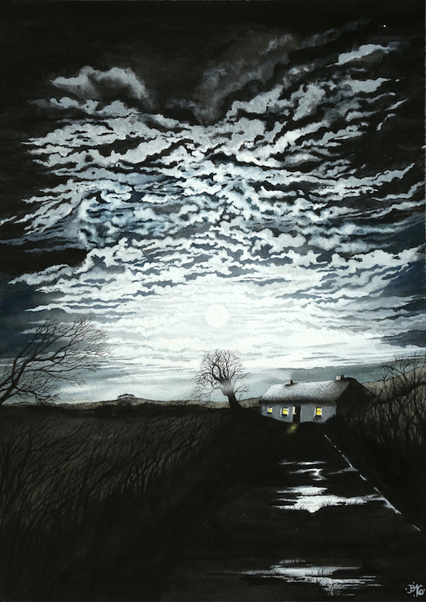 Whitethorn scent may rise to meet me or, as tonight, turf smoke greets my flight across grey fields.